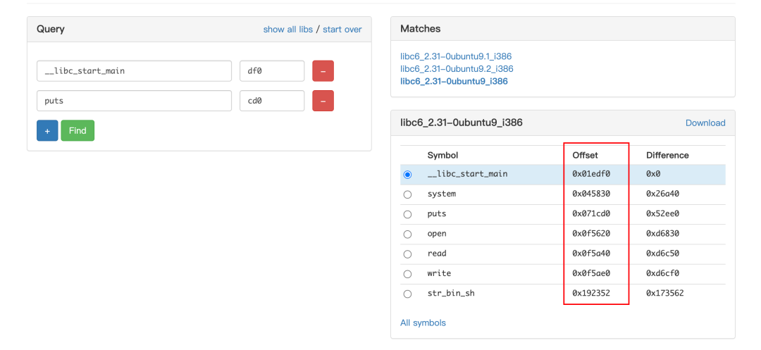 简而言之就是,当一个函数被调用过后,got表里保存了他在内存中的地址,可以通过泄漏got表内存来泄漏函数地址,然后可以根据起泄漏的函数地址获得其libc版本,从而计算其他函数在内存空间中的地址。因为libc中任意两个函数之间的偏移是固定的。