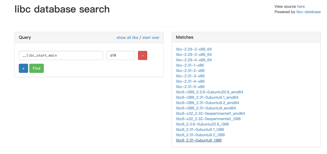 libc_binsh = #通过libc database search获取libcbase = libc_start_addr - libc_start