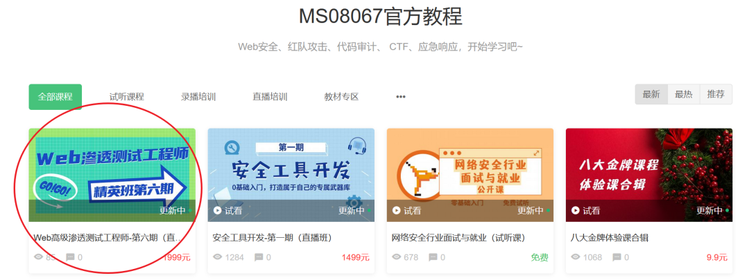 感谢广大学员的喜爱与支持,Web渗透测试工程师精英班第六期3.5号即将开启!