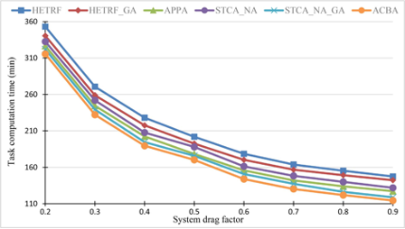 图7 不同系统阻力的平均任务完成时间