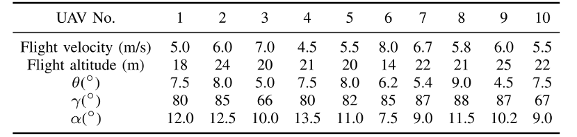表1 仿真实验的无人机参数