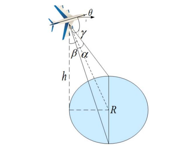 采用m架UAV搜索n个区域T={T_1,T_2,…T_n}。无人机具有不同的能力和属性,最初停放在同一训练基地。无人机U_i的主要特征有v_i、vs_i、h_i、theta_i,分别表示飞行速度、扫描速度、飞行高度和俯仰角。alpha_i表示宽幅传感器的水平视野,gamma_i表示传感器的安装角度,即视野与U_i纵轴之间的夹角。Ui的检测区域如图2所示。