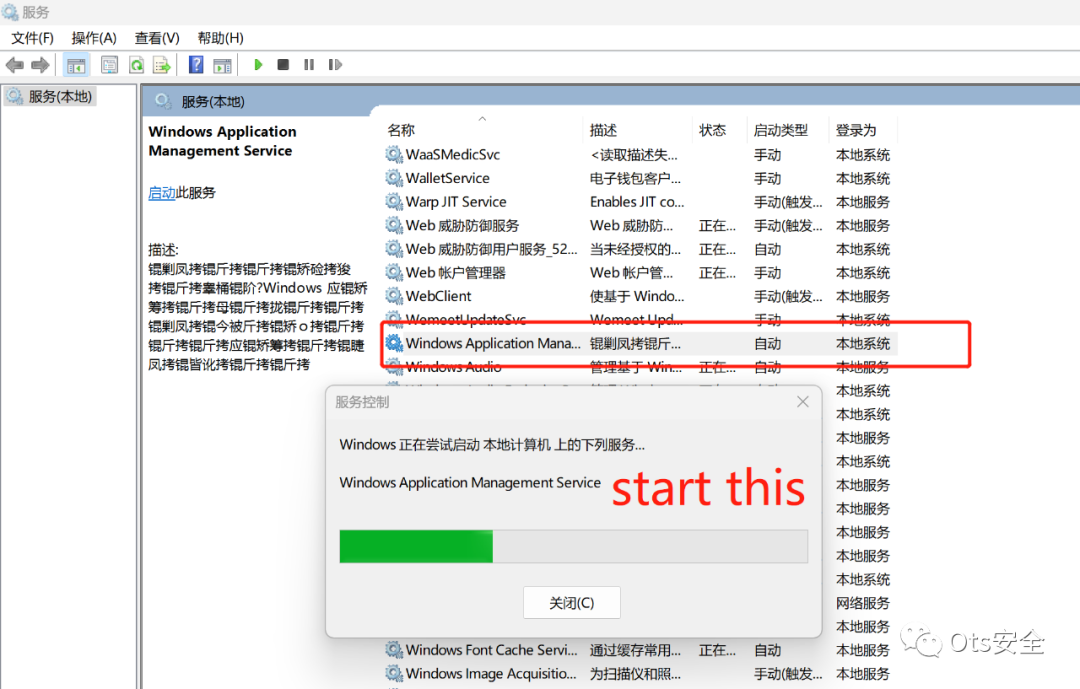 如果Windows Application Management Service已经启动,您可以重新启动它