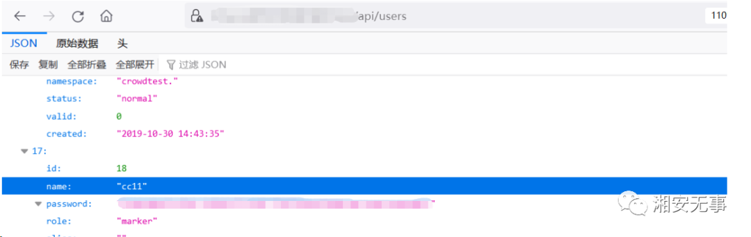 第二种:就是接口泄露了账号密码,比如:/api/users,这个也是在百度的一次漏洞挖掘出现了,是不是很离谱,明明是教育园却变成了讲百度src的了