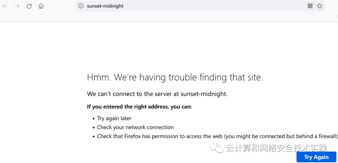 把域名和IP添加到hosts文件,再次浏览器访问http://sunset-midnight,