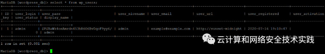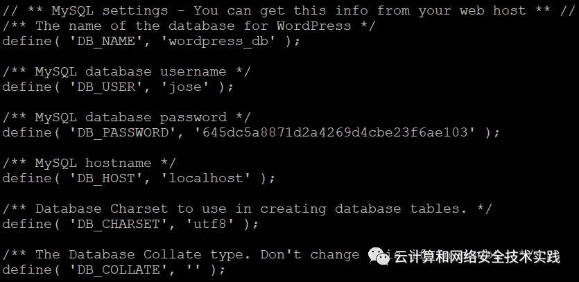 从/var/www/html/wordpress/wp-config.php中查看到用户名密码,
