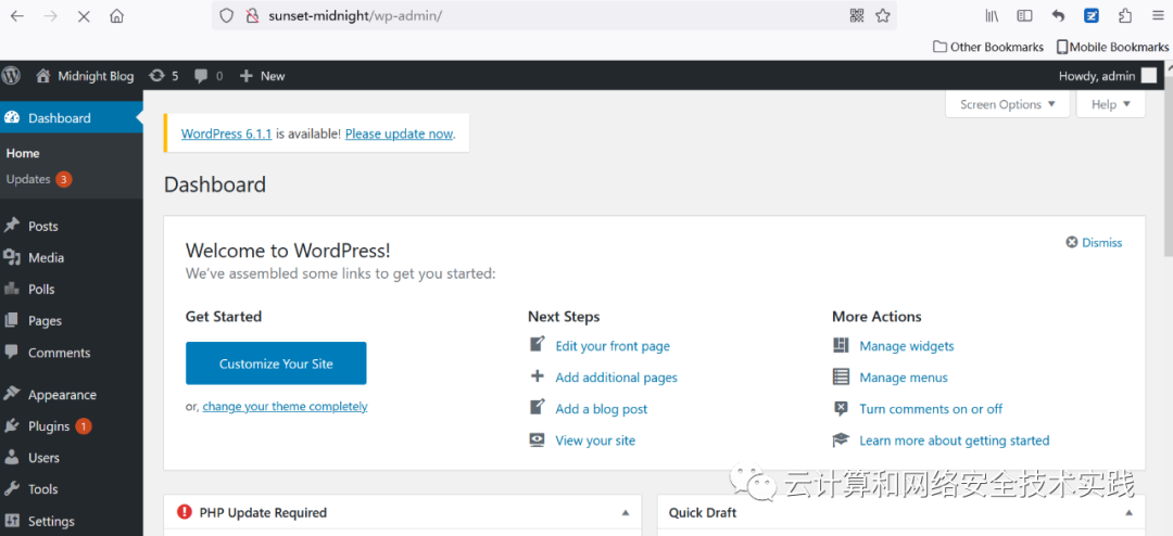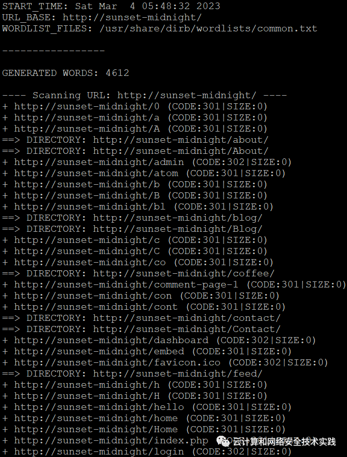 做一下目录暴破,dirb http://sunset-midnight,发现了后台url,