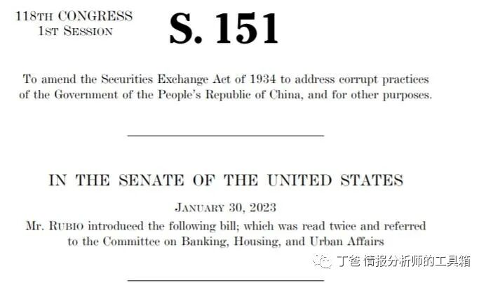 8、卢比奥提出的《2023年中国腐败法》,旨在修订 1934 年《证券交易法》,以解决中国政府的贪污行为及其他目的。