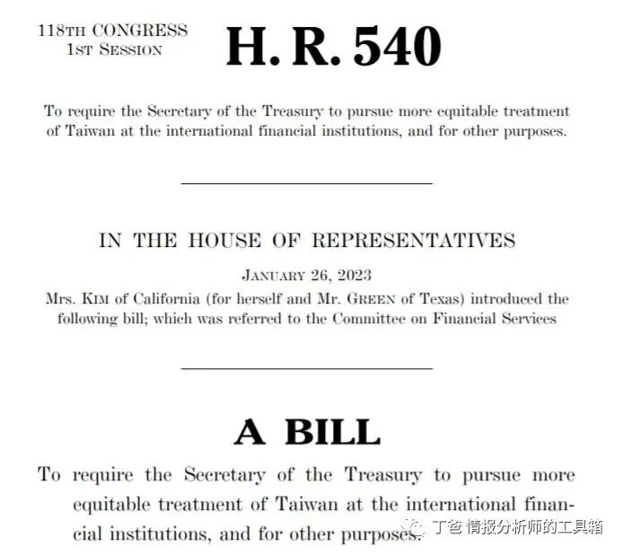 2、格林提出的《不歧视台湾法》,要求财政部长在国际金融机构中为其他目的更公平地对待台湾。