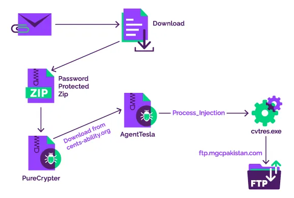 近日,Menlo Labs 监测发现一个未知的威胁组织的攻击活动,该活动利用 Discord 分发 PureCrypter 下载器,旨在瞄准亚太地区和北美的政府实体组织展开攻击。PureCrypter 是一款高级下载器,可下载远程访问木马 (RAT) 和信息窃取程序,恶意软件使用一个受感染的非营利组织的域作为命令和控制(C2)来提供第二个有效载荷,传播多种类型的恶意软件,包括 Redline Stealer、AgentTesla、Eternity、Blackmoon 和 Philadelphia 勒索软件。攻击者利用 Discord 托管有效载荷,并通过电子邮件发送有效载荷的链接,诱导目标下载包含 PureCrypter 载荷加密的 ZIP文件。然后攻击者通过 PureCrypter 下载器下载名为 AgentTesla 的后门,从不同浏览器窃取存储的密码、剪贴板记录、屏幕键盘记录和捕获屏幕等。AgentTesla 与被接管的 FTP 服务器建立连接,将收集到的受害者的凭据上传至云端服务器。![]()