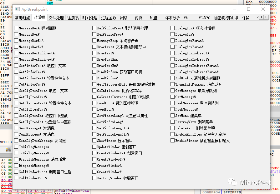 //反汇编窗口右键二级菜单名