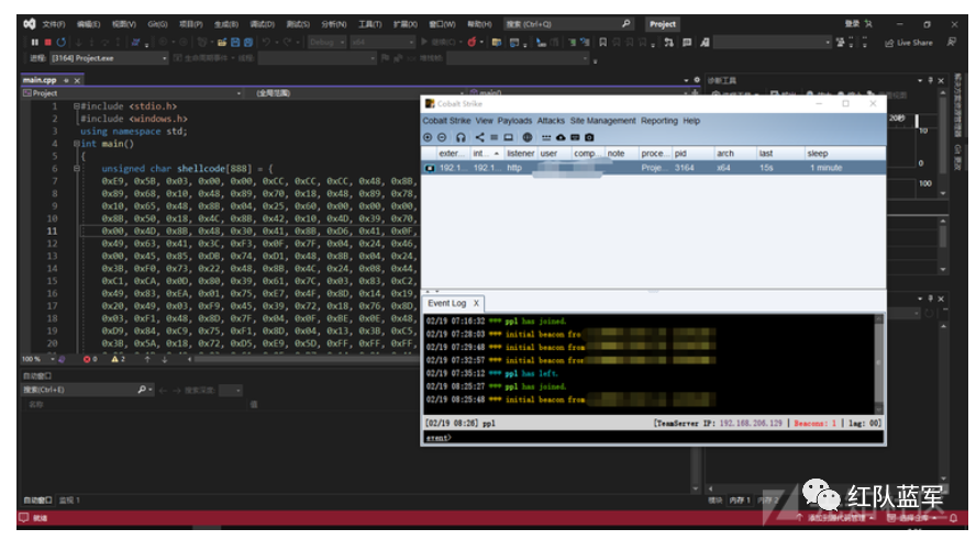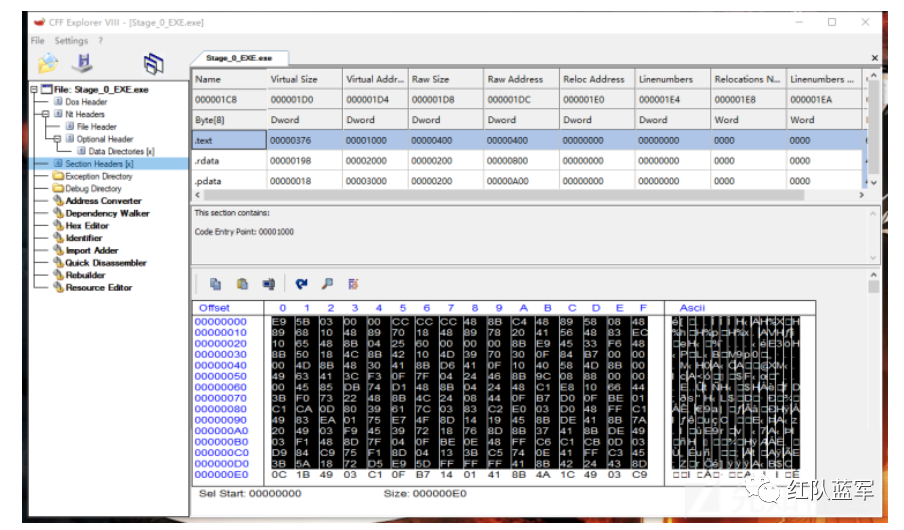 配置好相关选项后,构建项目生成 exe,然后提取 .text 段就可以拿到我们的 shellcode 了: