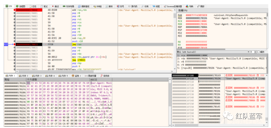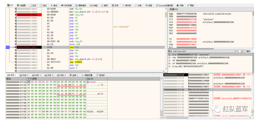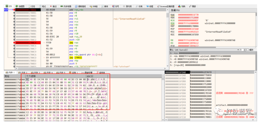 循环调用 InternetReadFile 将 beacon 读取到分配的内存: