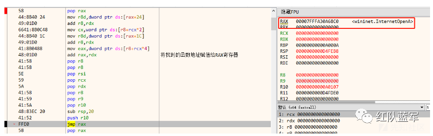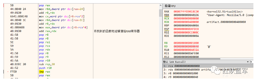 | mov eax,dword ptr ds:[rax+88] | 将导出表RVA赋值给eax寄存器