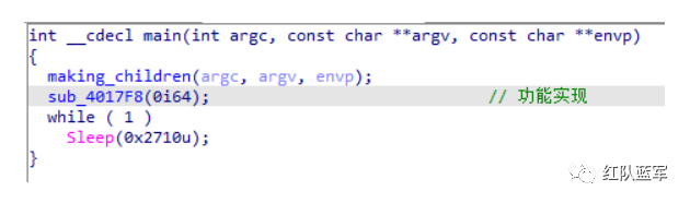 进入主函数,直接进 sub_4017F8 函数看它的功能实现: