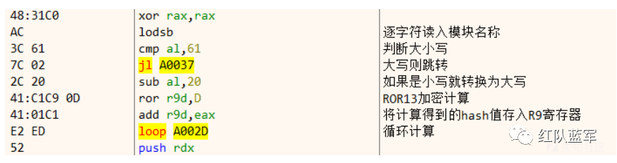 | add r9d,eax | 将计算得到的hash值存入R9寄存器