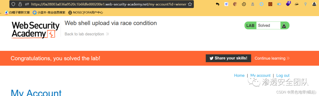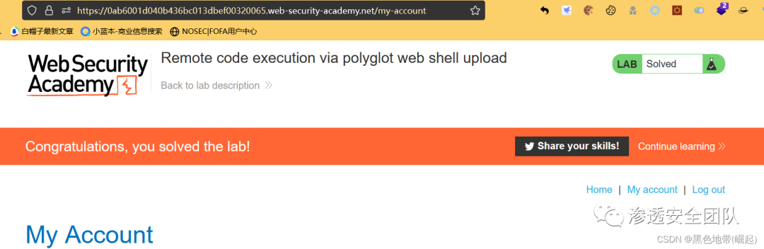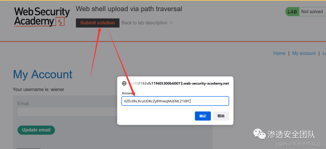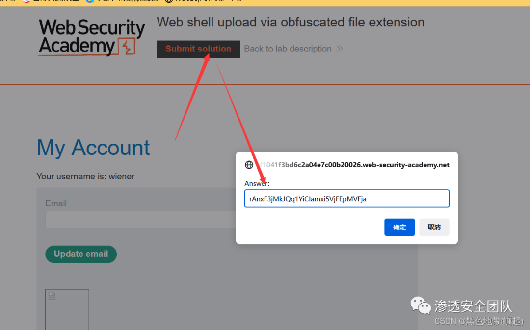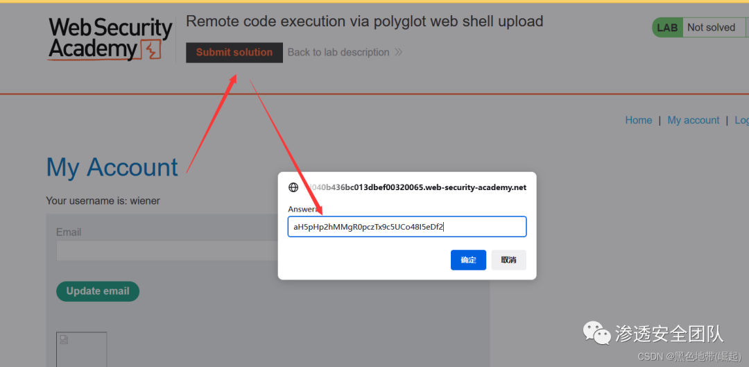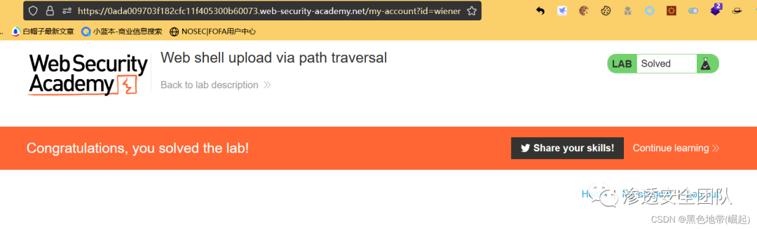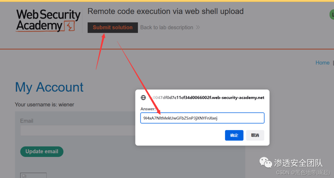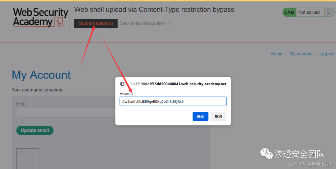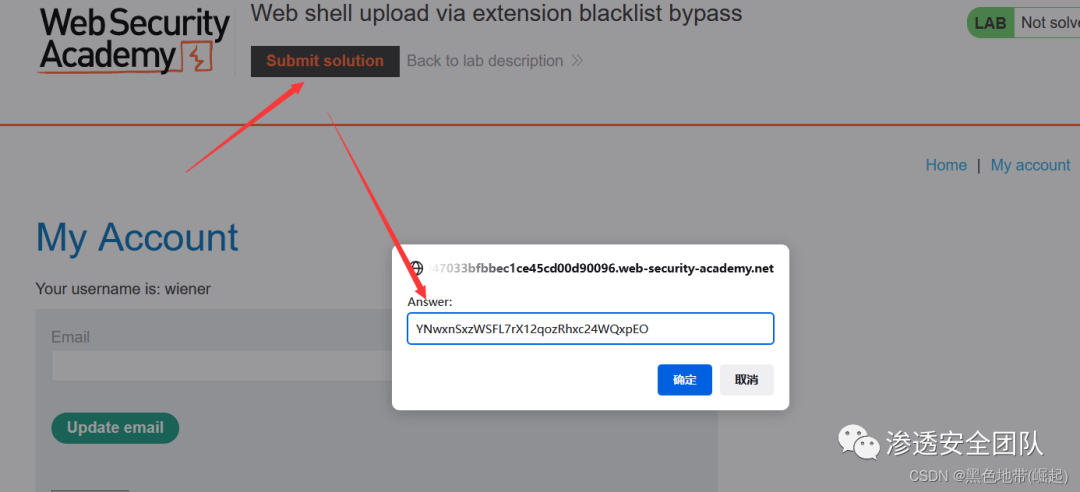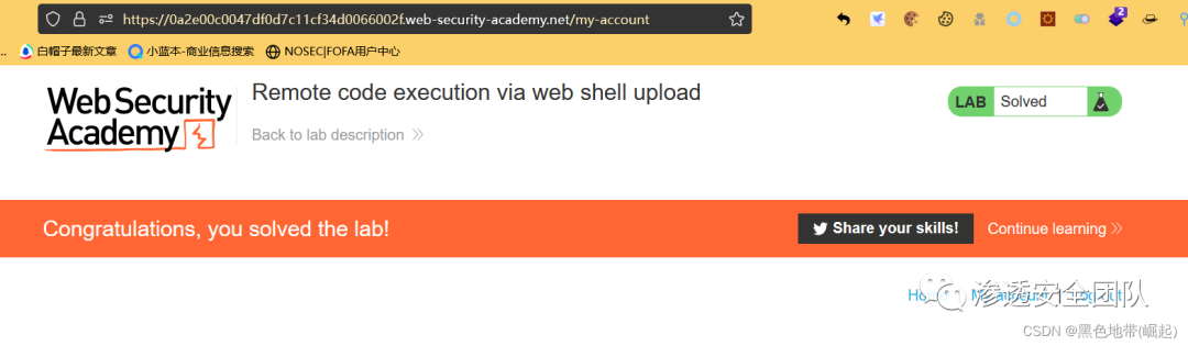 要解决实验问题,上传一个基本的PHP Web shell,然后使用它对文件/home/carlos/secret的内容进行过滤并提交