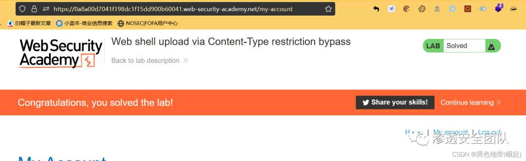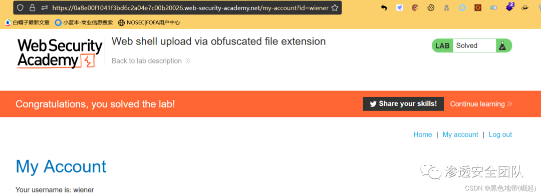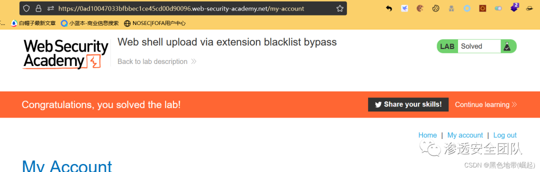 本实验包含易受攻击的图像上载函数。某些文件扩展名被列入黑名单,但由于此黑名单配置中的基本缺陷,可以绕过此防御。