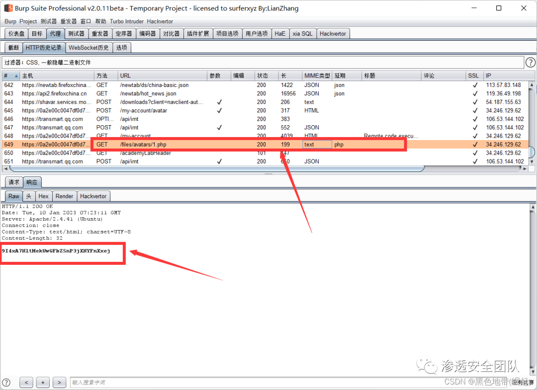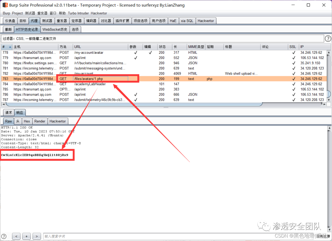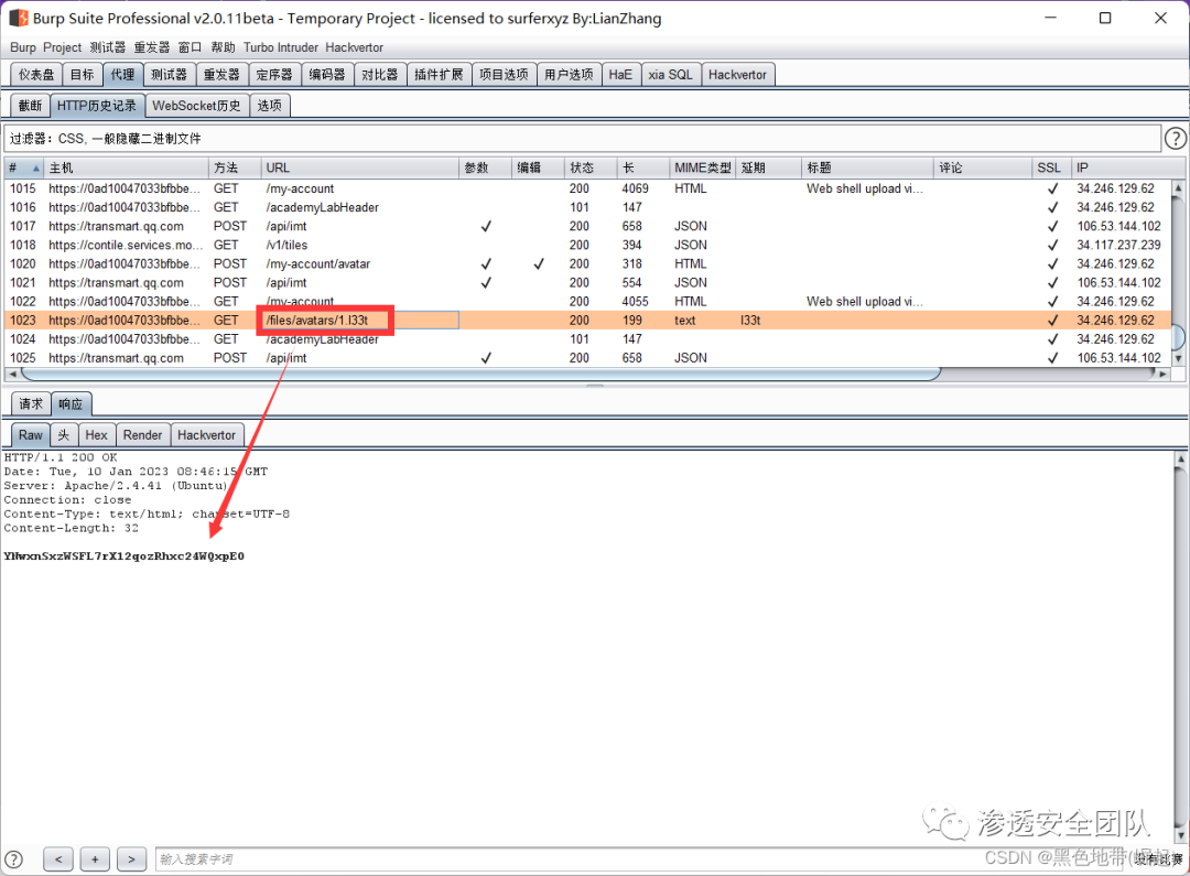 HTTP历史记录中,请求类型GET /files/avatars/<YOUR-IMAGE>
