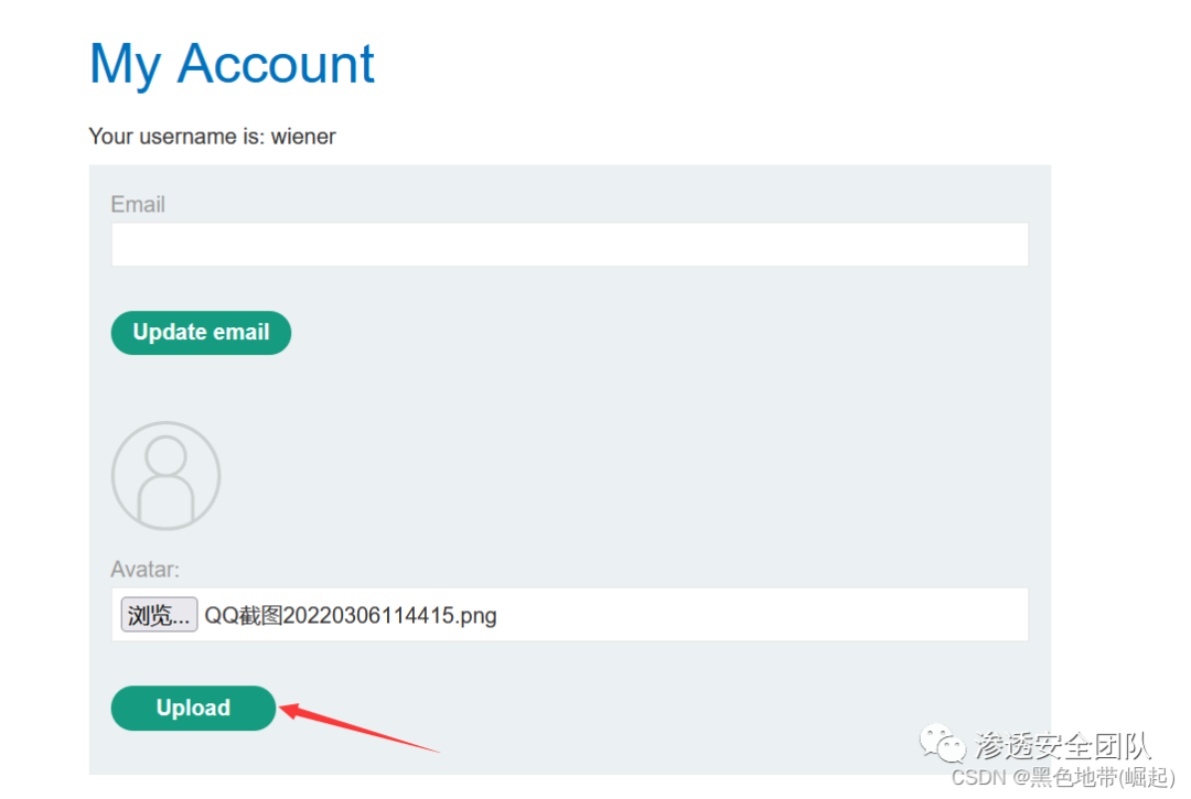 通过Burp代理流量时,登录您的帐户,注意上传头像图像的选项