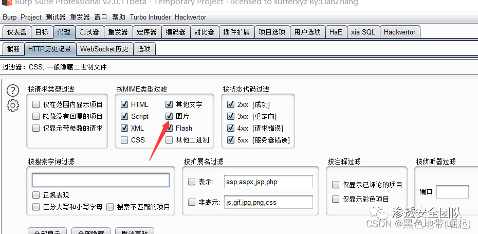 HTTP历史记录-----单击过滤器栏以打开"过滤器设置"对话框------启用"图像"复选框