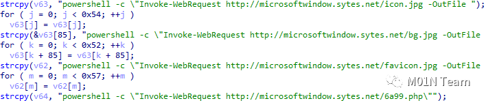 图5 解密后的shellcode会执行powershell命令下载后续的恶意文件