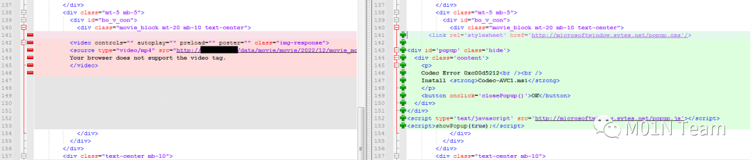 当受害者观看网站视频时,注入网站的恶意脚本提示用户视频解码错误,诱导受害者下载安装解码器安装程序。这些解码器程序都进行了恶意修改,会执行powershell命令下载进一步的恶意载荷,这些恶意载荷最终会在受害者机器通过滥用合法程序或Chrome扩展等方式安装。