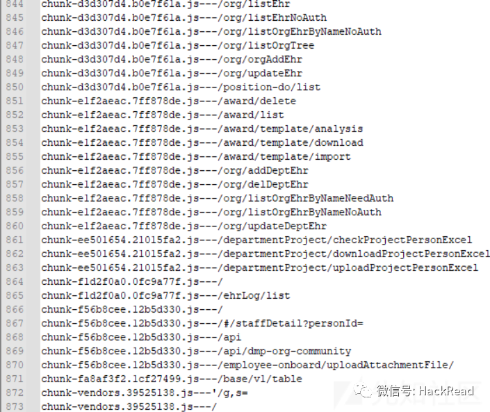 只能一个个对chunk-xxx.js文件进行发现,但是js文件又太多了,足足有90多个,因此写了一个简单的python脚本批量提取了一下路径