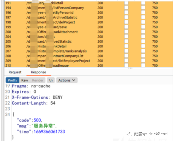 发现了一些GET/POST能够直接返回数据的接口,但是其实绝大部分的接口其实还是返回的服务异常,如果直接忽视掉这些肯定会错过很多漏洞。