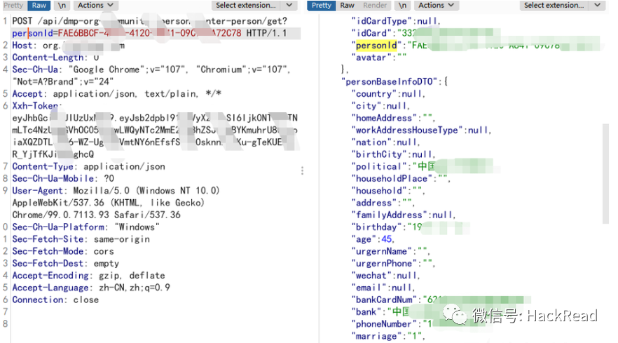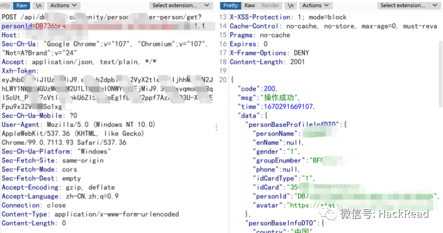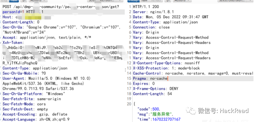最终定位到了persionId参数为影响数据的参数,可以看到我personID=1 就返回异常,而输入我自己的正确的personID就返回正常