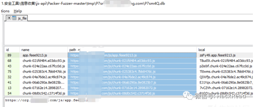 用packerFuzzer里存储的db直接拿到所有的JS的路径,当然packerfuzzer也会自动下载文本。