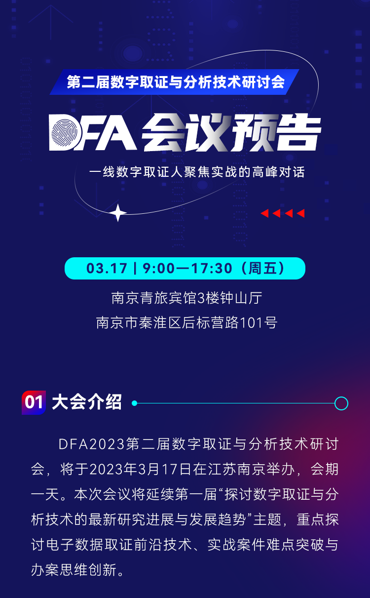 会议预告 | DFA2023第二届数字取证与分析技术研讨会即将开幕......