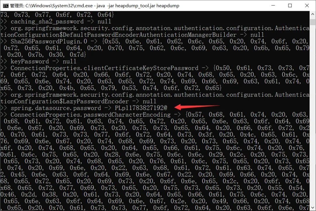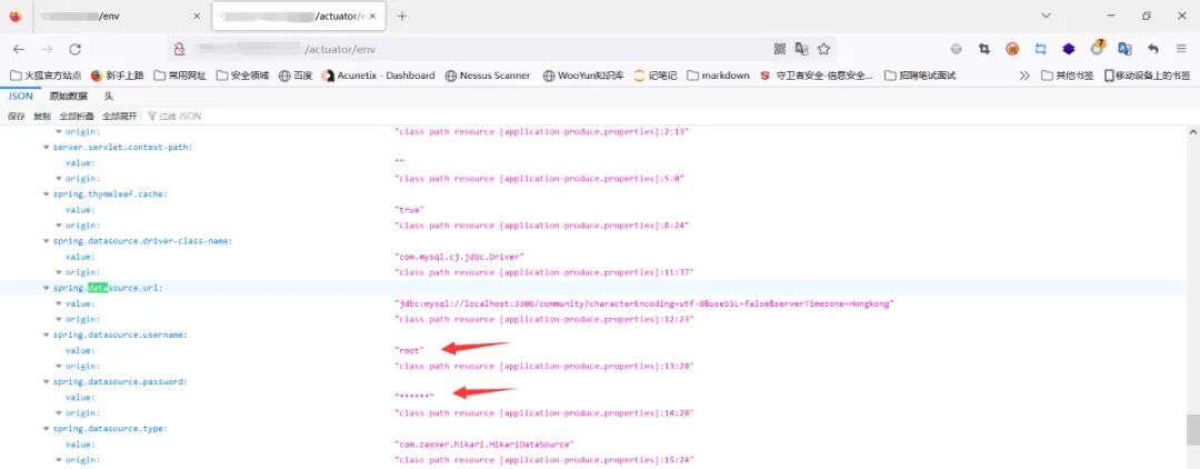 针对env这种路径下泄露的密码基本上都是加密的,会用星号进行脱敏,想要获取相应的明文密码可以尝试后面通过分析heapdump数据的方式。