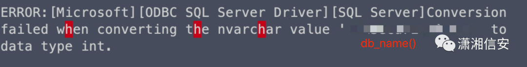 我们知道,sql server报错有个很爽的技巧就是基于类型错误:int+varchar,尝试报错出db_name()。