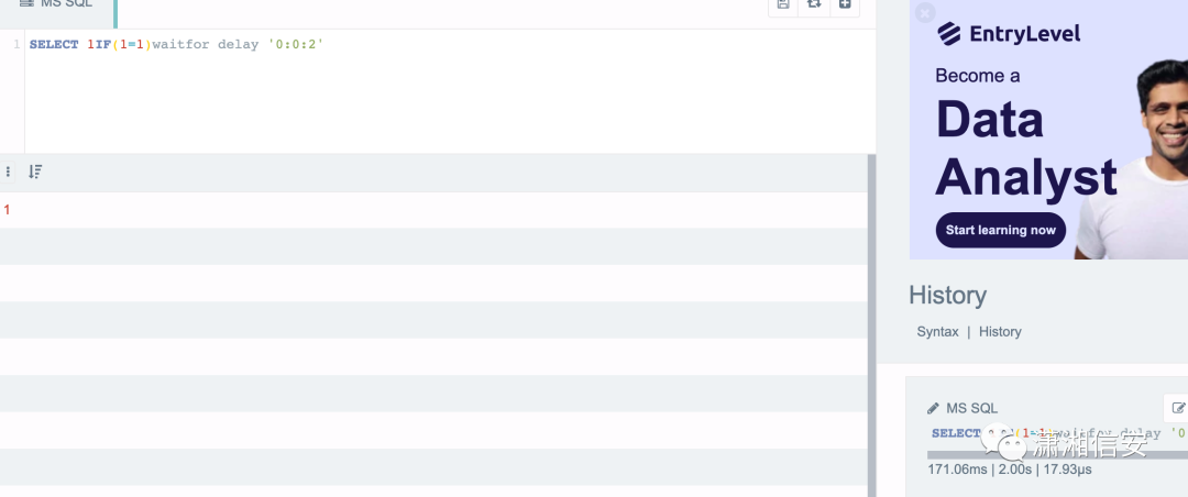 sysobjects where xtype='u' #查询数据库中的所有表名我开始尝试rce,我们都知道sql server rce的条件是需要支持堆叠,我尝试;waitfor delay '0:0:3';直接给我报错了,那么大概率可能不支持堆叠查询
