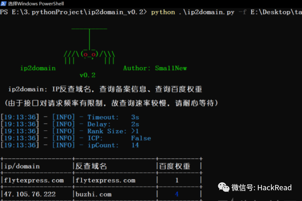 https://github.com/Sma11New/ip2domain 国内域名推荐ip2domain,会查询权重、ICP备案等
