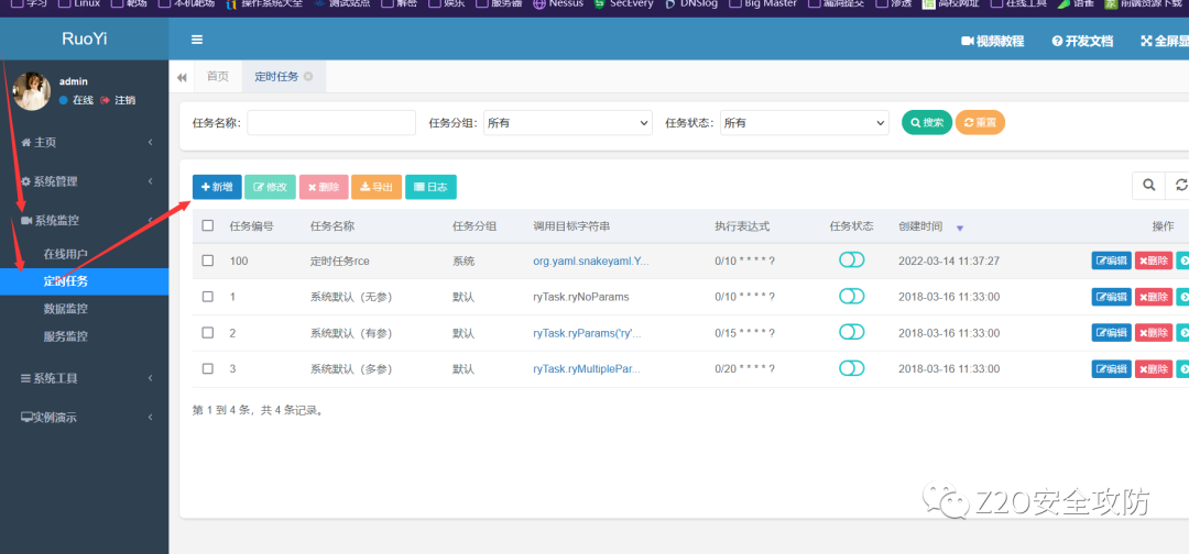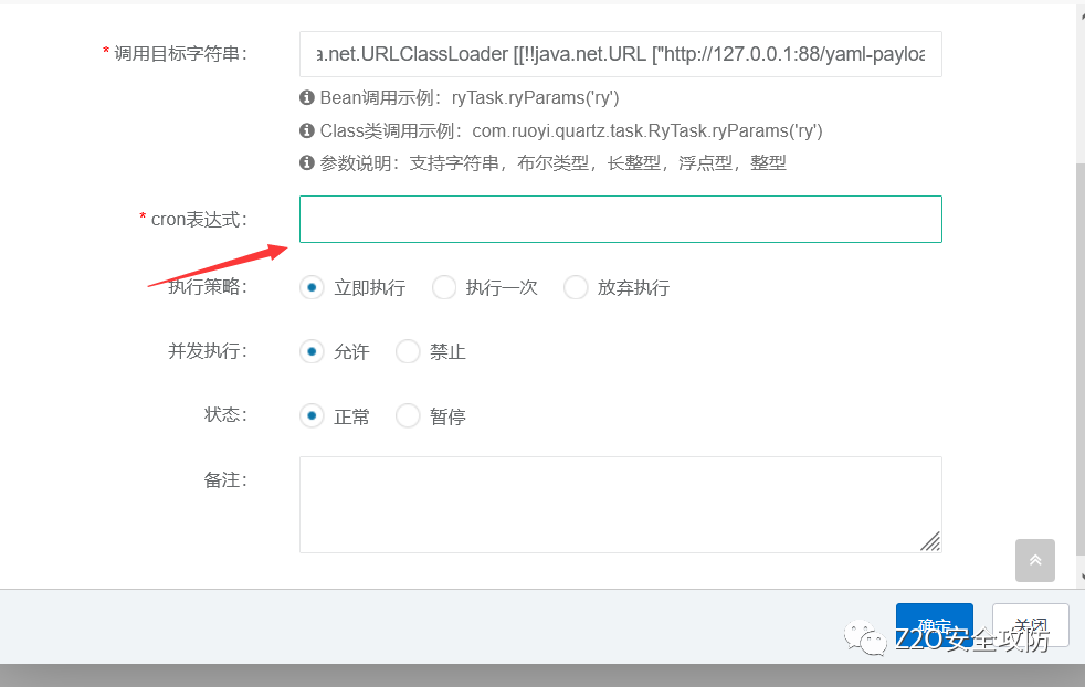 简要描述:由于若依后台计划任务处,对于传入的"调用目标字符串"没有任何校验,导致攻击者可以调用任意类、方法及参数触发反射执行命令。