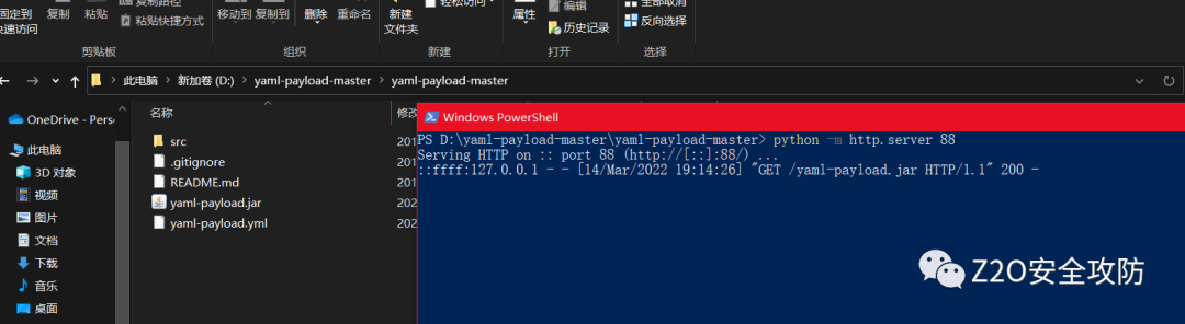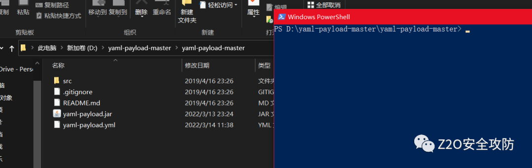 注意第二个命令 yam-payload.jar的jar包要与 yaml-payload.yml访问的jar包名称一一对应