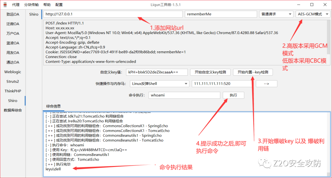shiro是若依的其中一个组件,咱们使用shiro的经典rememberMe漏洞来getshell