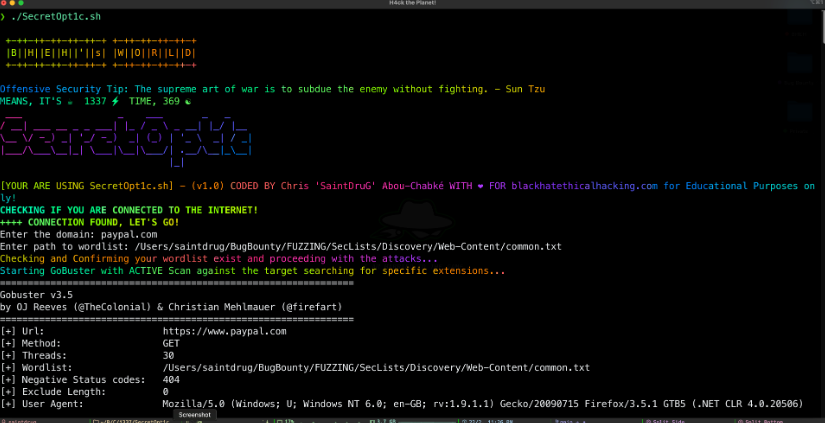 git clone https://github.com/blackhatethicalhacking/SecretOpt1c.gitcd SecretOpt1cchmod +x SecretOpt1c.sh