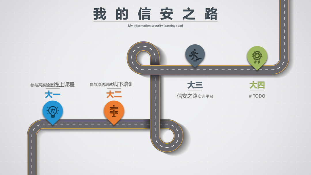 大二:为了加入学校的安全实验室,我开始接触CTF方向上的内容,刷了两个多月的题,加入了实验室,后来因为各种各样的原因拖着,安全方向一直没有进展,就是在原地踏步。不过幸运的是,实验室分配到了某线下渗透测试培训的免费名额,于是我再一次跟班上课,花了两个月的时间学习了解实战方向的内容。然后不出所料的,又一次的陷入了迷茫,在这期间我了解到了信安之路,于是我开始跟随信安之路实训平台学习。