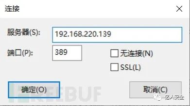 ② 点击连接 -> 连接,输入当前机器的机器名或IP,端口默认为 389