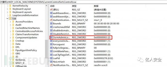 0:默认值,只有当域控制器重启并进入 DSRM 模式时,才可以使用 DSRM 管理员账号。