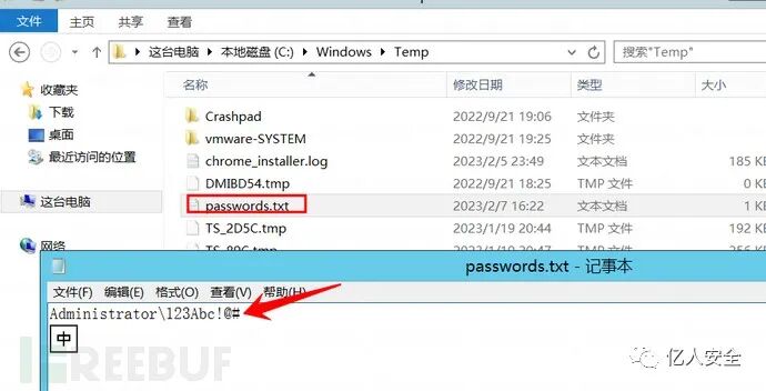 ③ 当管理员修改密码时,用户的新密码将记录在 c:\windows\temp 目录的 password.txt 文件中。
