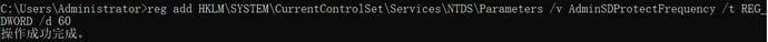 reg add HKLM\SYSTEM\CurrentControlSet\Services\NTDS\Parameters /v AdminSDProtectFrequency /t REG_DWORD /d 60