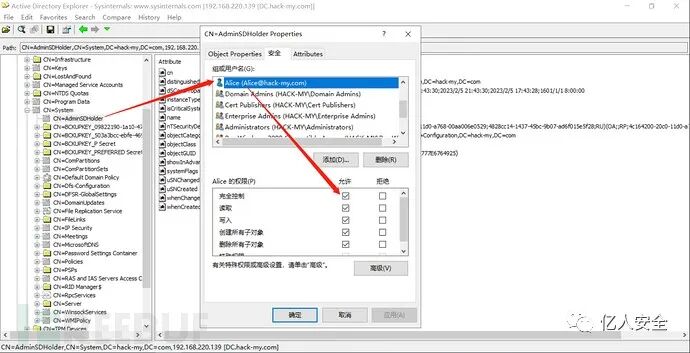 执行后,Alice 用户成功拥有 AdminSDHolder 容器对象的完全控制权限